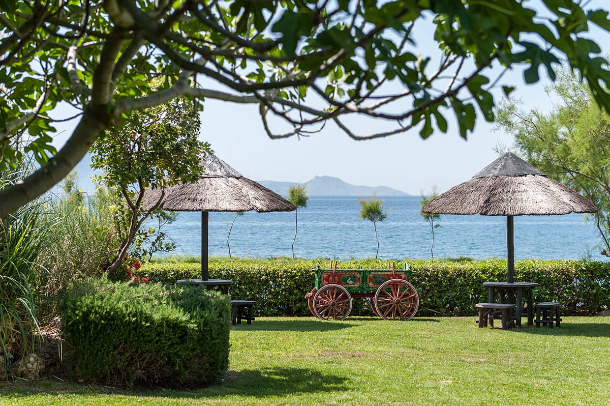 - The Garden House (beachfront): A separate, fully independent building featuring 2 ground-floor suites with sea views, each with super king-size bed, sofa bed, bathroom & kitchenette.